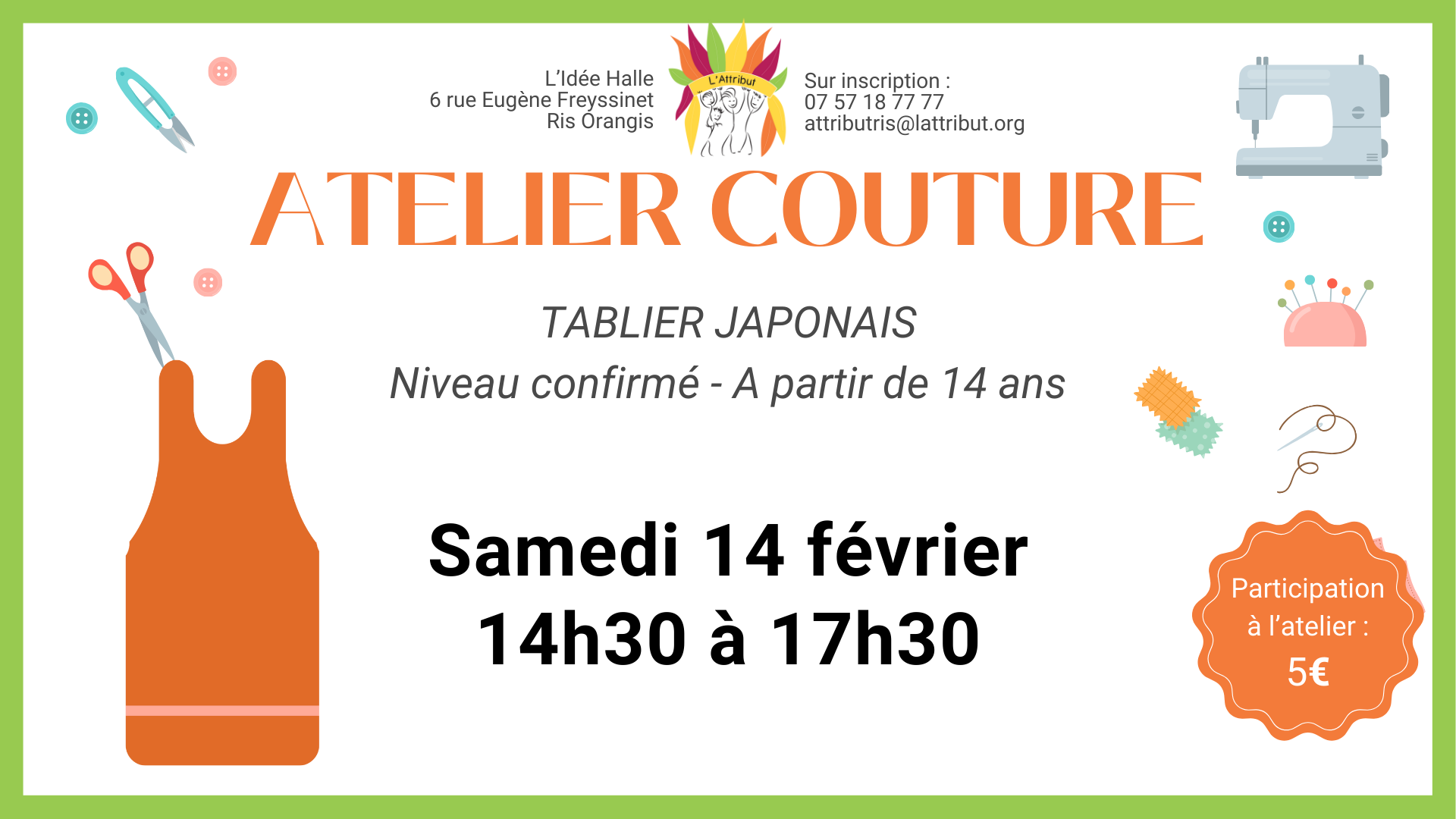 💸 Participation : 5 € (règlement sur place, en espèces ou carte bancaire)