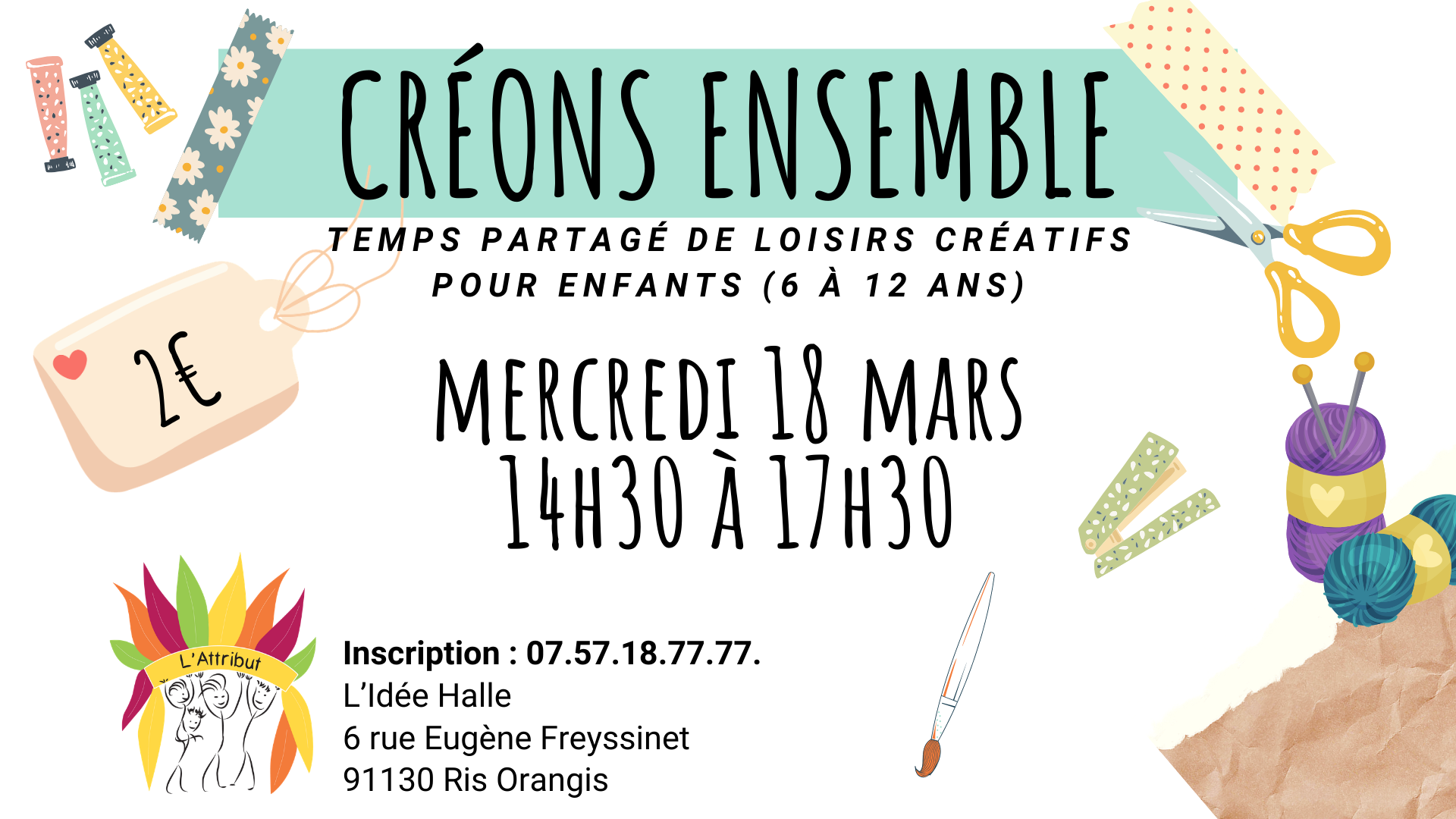 Avec Créons ensemble, L’Idée Halle propose un atelier de loisirs créatifs pour les enfants, autour du bricolage et de la création à partir de matériaux de récupération.