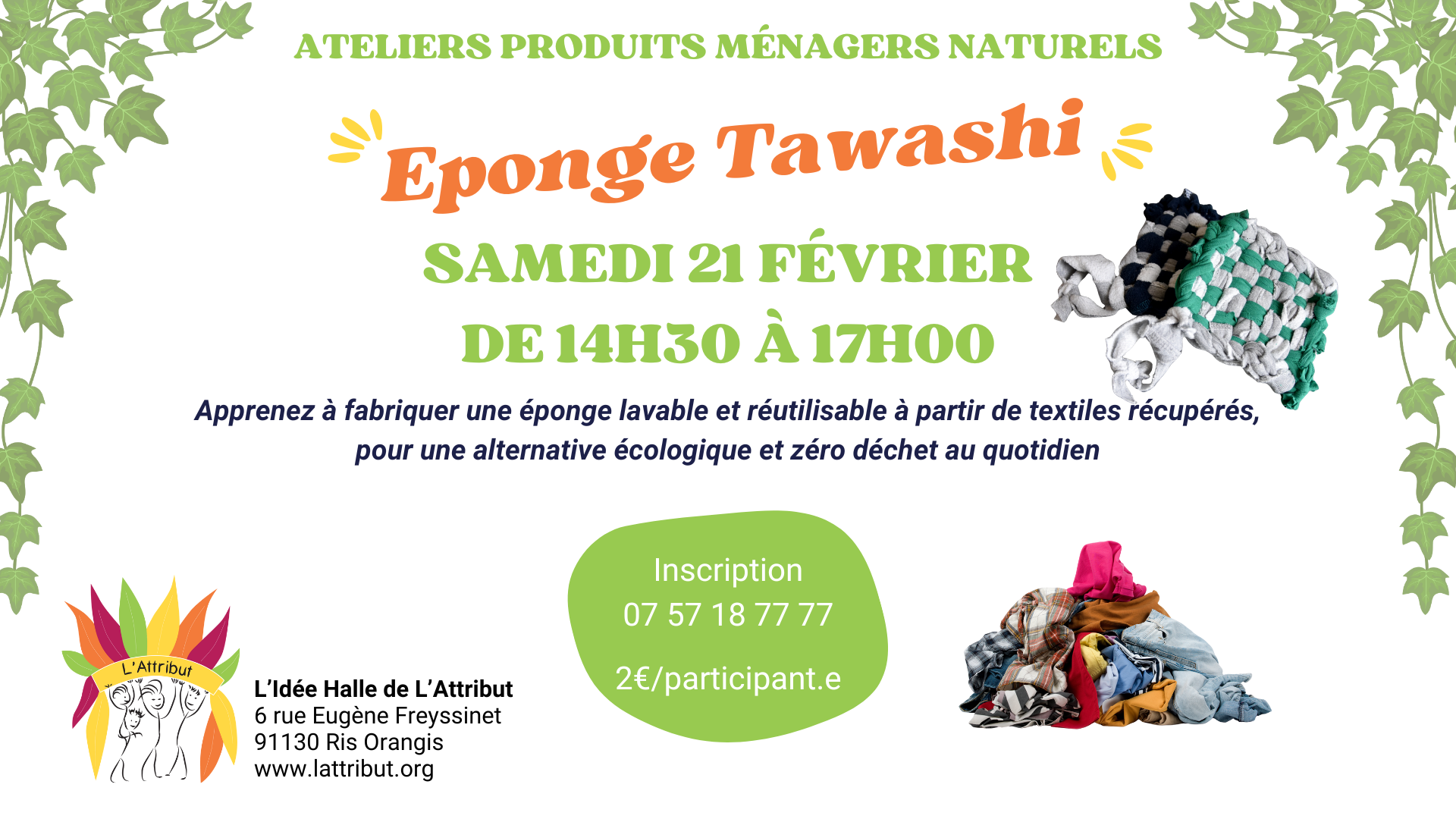 Atelier Tawashi – Fabrique ton éponge zéro déchet à L’Idée Halle