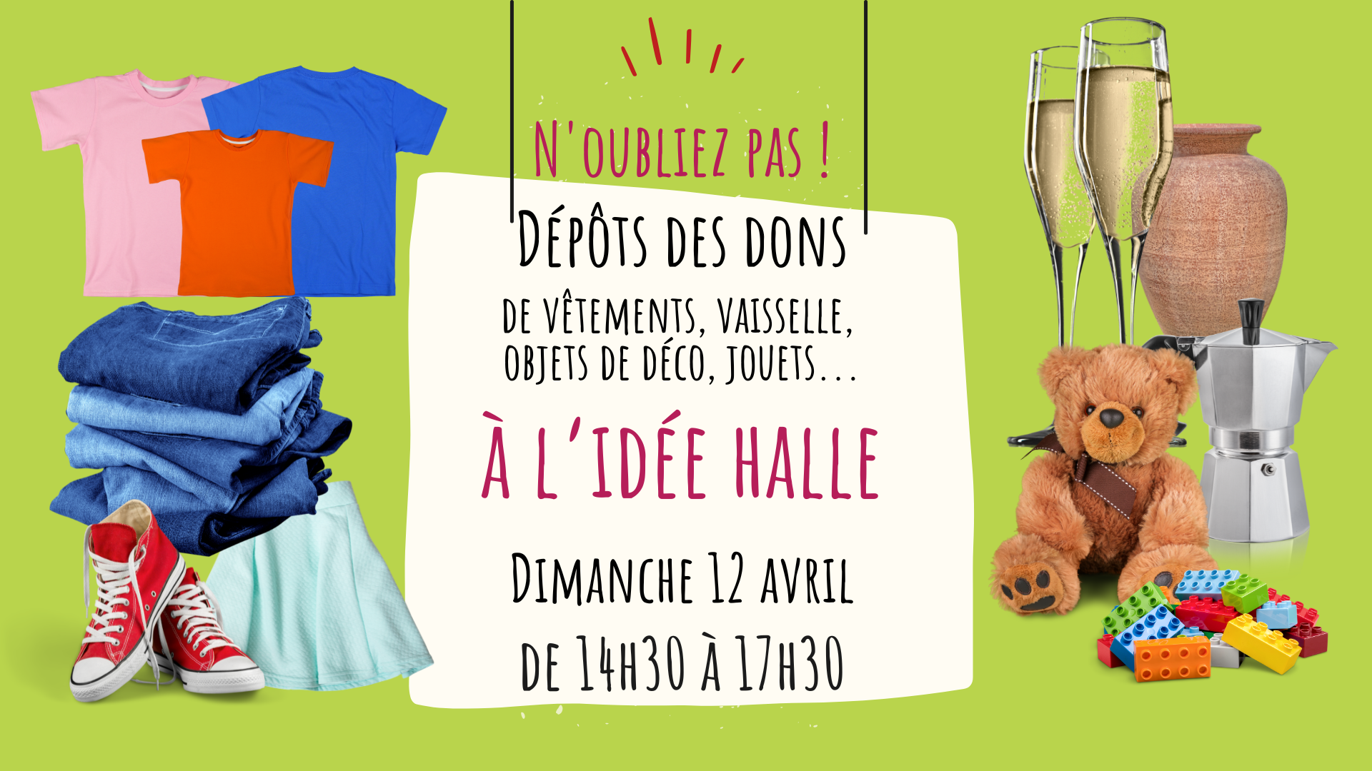 📍 Rendez-vous à l’Idée Halle pour déposer vos dons et partager un moment convivial.