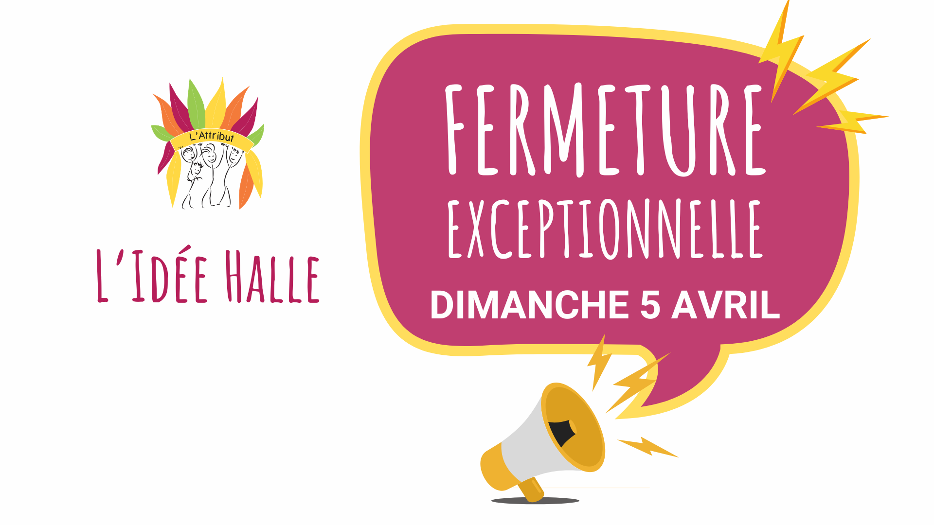 ⚠️ Fermeture exceptionnelle de L’Idée Halle – dimanche 5 avril