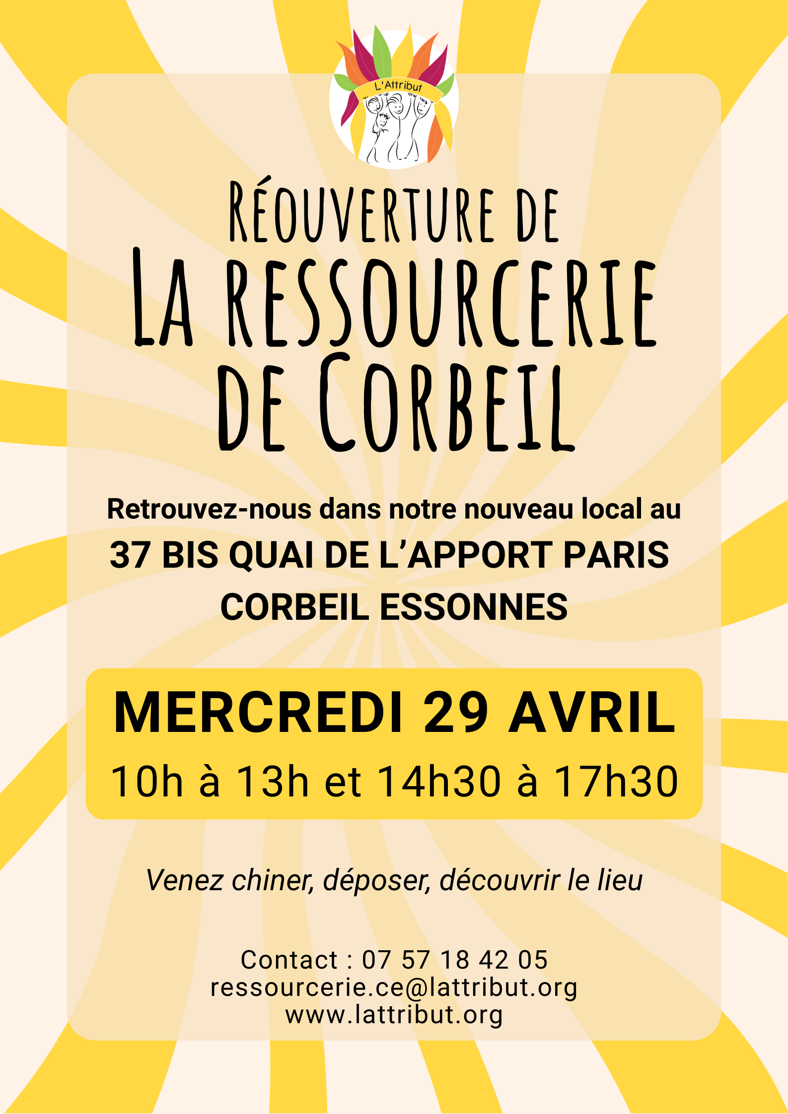 La ressourcerie de L’Attribut à Corbeil-Essonnes rouvre ses portes le mercredi 29 avril à 10h dans son nouveau local ✨