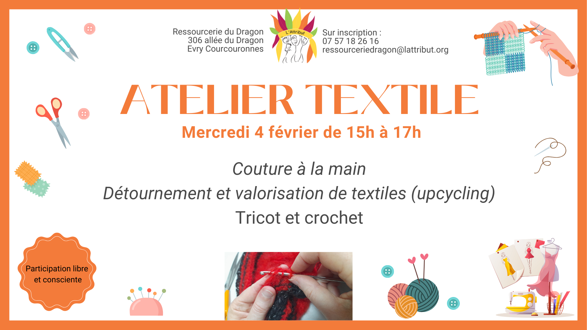 • Atelier couture à la main, tricot et crochet à la Ressourcerie du Dragon – Evry-Courcouronnes