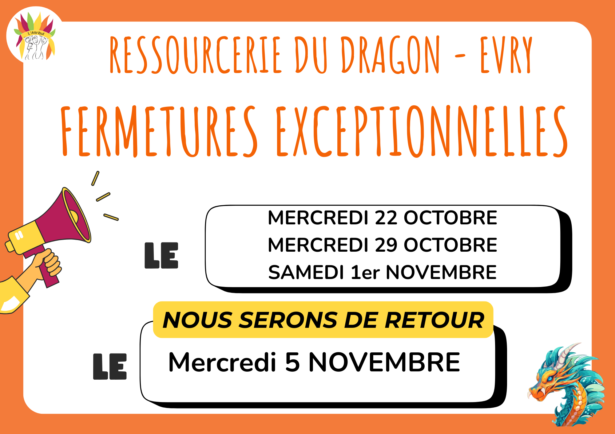 Fermeture exceptionnelle de la Ressourcerie du Dragon – Evry Courcouronnes